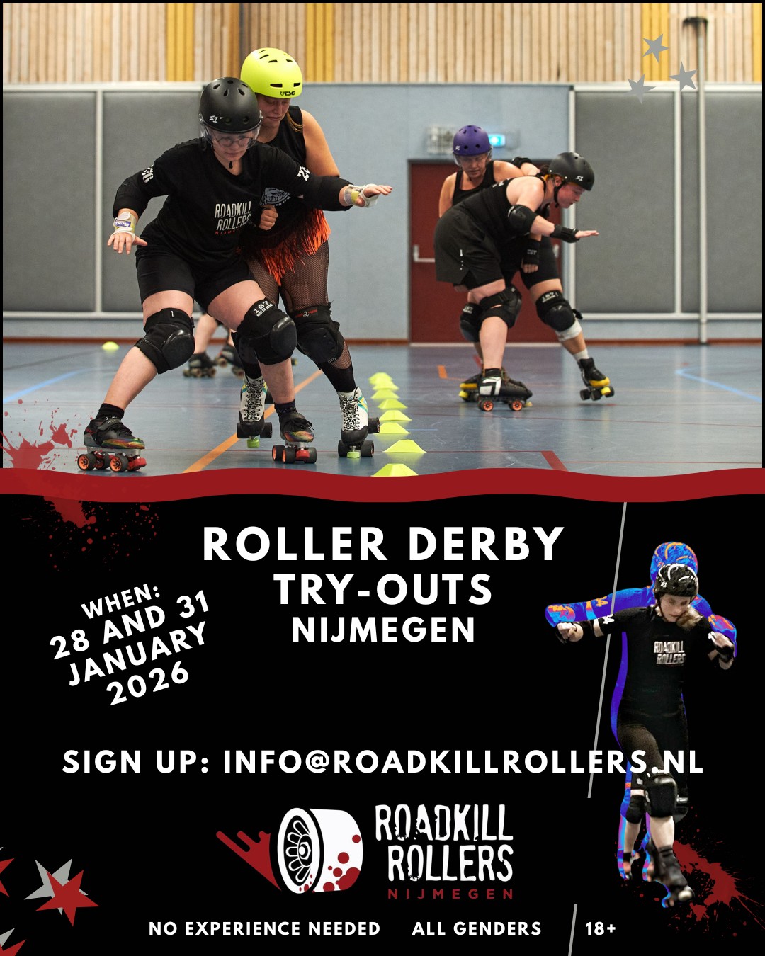 Tijdens deze gratis open training krijg je een kennismaking met Roller Derby, leer je de basis en maak je kennis met de Roadkill Rollers.